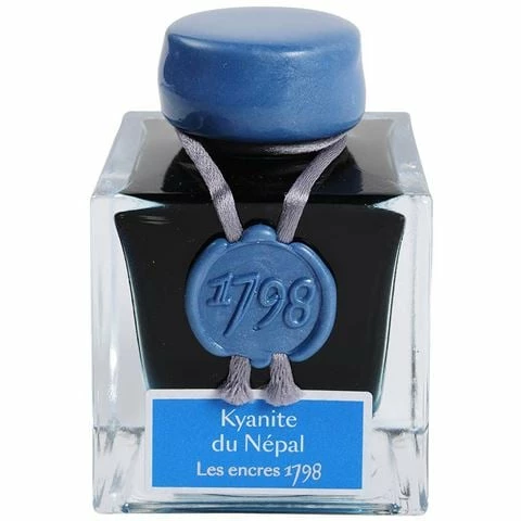 The Kyanite of Nepal Ink belongs to the 1798 Anniversary collection and is bright blue with a nod towards turquoise. The colour is intensified with silver glitter for a powerful and elegant writing. Since the discovery of the famous mining region of Nepal, Kali Gandaki, Kyanite has been recognized as a noble mineral because of its similarities with the rich tones of sapphire.