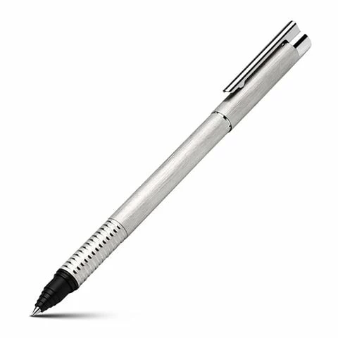 reliable, the Logo Rollerball Pen impresses with its grooved grip, all-metal brushed stainless steel barrel and fluid rollerball ink, all topped off with a spring-mounted steel pocket clip.
