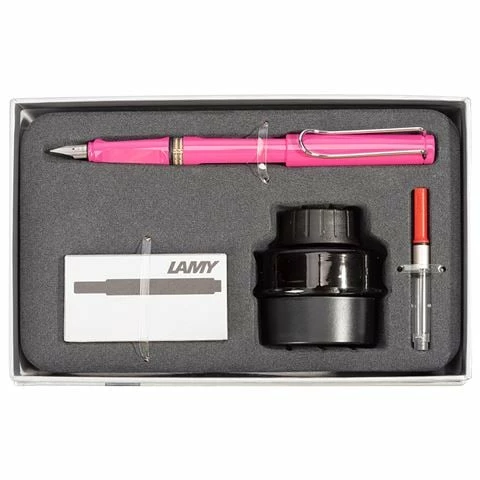 Comprising a superb LAMY Safari Fountain Pen Medium along with ink cartridge refills plus a LAMY Converter Z 24 and a bottle of ink! LAMY pens make writing a delight.