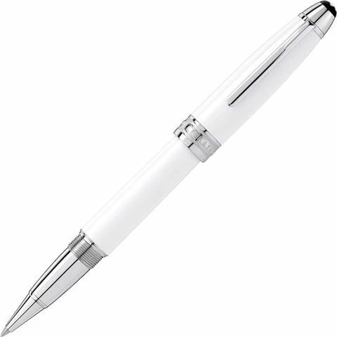 Mont Blanc Meisterstück White Lacquer collection is inspired by the untouched snow cap of the Mont Blanc mountain. The luxury rollerball features a white precious lacquer barrel and cap and platinum coated fittings. The cap is crowned with the iconic white Mont Blanc emblem and three rings embossed with the Mont Blanc brand name.