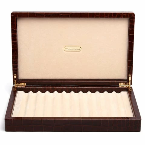 The most beautiful writing instruments deserve a home as elegant and sleek as they are. Your pens will be perfectly at home inside this stunning leather display case from Renzo. Inside, soft felt grooves await twelve of your most prized pens.